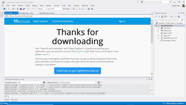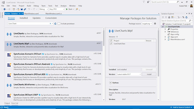 On this interface we click on browse high up above the search bar, after that we make the search on Live Chart, we choose WPF version. Click install, wait for it, you are ready to go !
